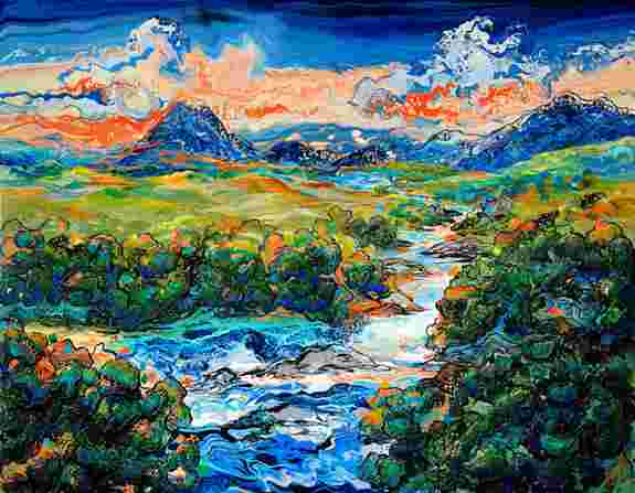 Drawing on the beauty of nature, I create unique artwork using acrylic pour backgrounds, abundant textural elements, and oil painted realism to make what I call “abstracted landscapes.” This creates an image that embraces the spontaneity of modern abstract art while maintaining the appeal of realistic traditional landscape scenes.