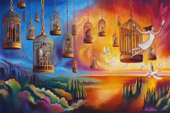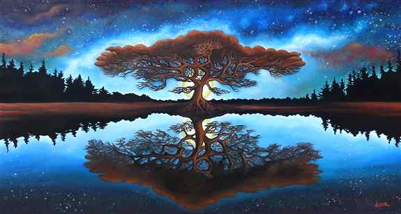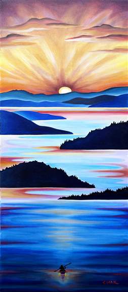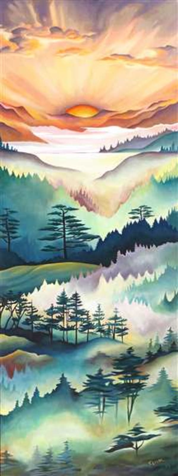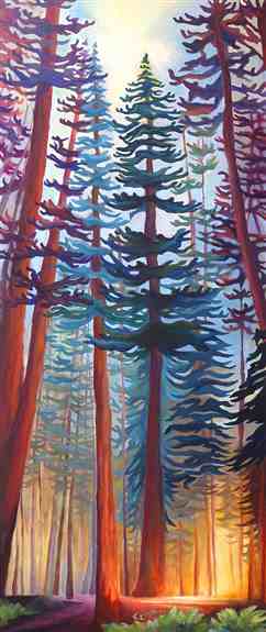 I paint using acrylic paint on canvas, bright colorful landscapes that tell a story. Each painting starts with a vision or a dream.. then once created serves as a portal, where each one can see their own lifes journey within the story of the painting.Recently, I have been deeply inspired by the old growth forests and the majestic landscapes of the Pacific Northwest. These pieces carry messages close to my heart. The stories I create are interwoven with the paintings and touching on themes of survival, surrender, gratitude, spiritual growth, and environmental awarenessProduct Images: